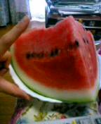 …じゃなくて、自治医大の帰りに寄った実家(宇都宮)からスイカの大玉をもらったのでさっそく食ってます。8分の1。でけぇ…