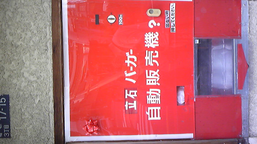 よっく見ると、自販機に立石バーガーが一つストックされてあるんだぜ。
